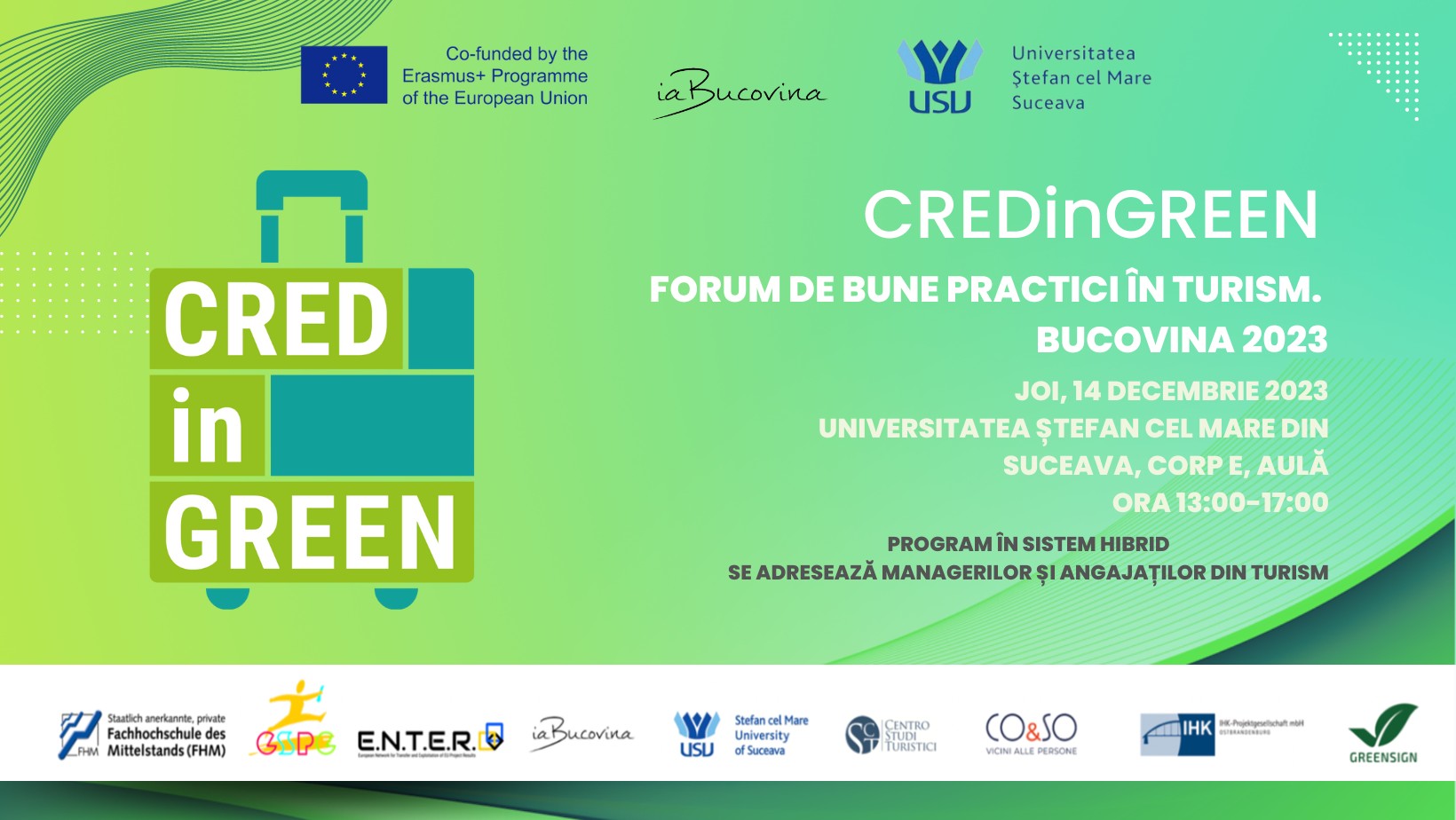 organizat în cadrul proiectului CREDinGREEN “Schimbările pieței turistice cauzate de Covid-19 și de Pactul Verde European (EU Green Deal). Perfecţionarea managerilor IMM-urilor din turism prin micro-certificate[1]“ Având în vedere schimbările recente la nivel internațional care au afectat domeniul turismului într-o mare măsură, vă invităm să participați la un program de instruire focalizat pe principalele tendințe manifestate în domeniul ospitalității, după pandemia de Covid-19 și în lumina noilor direcții […]